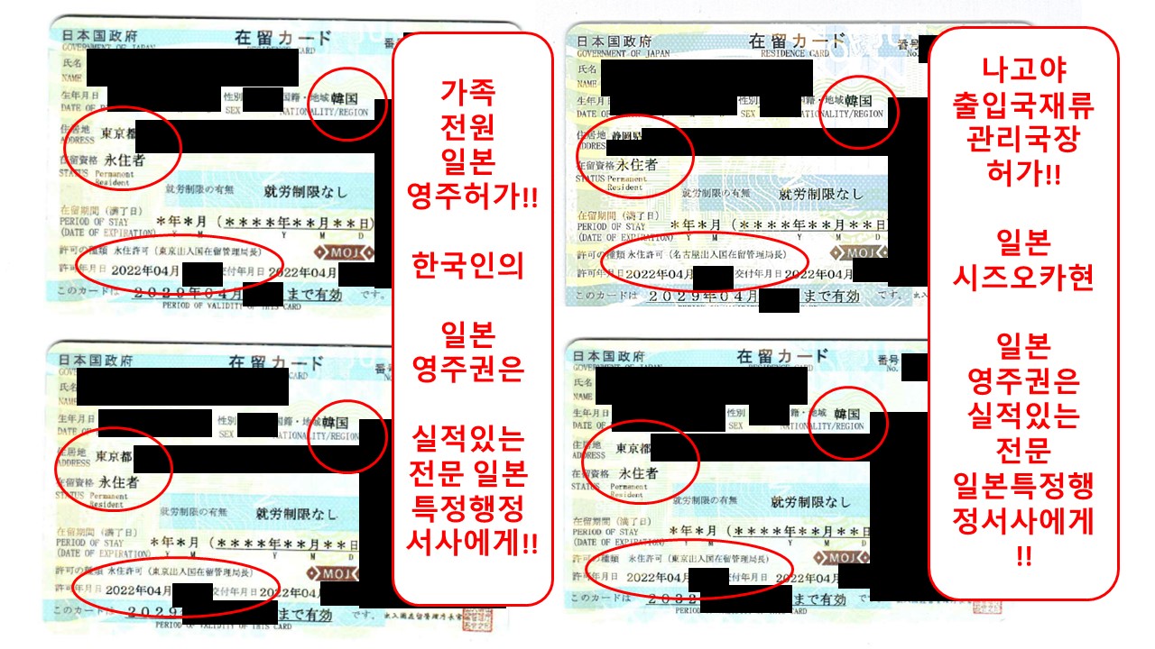 한국인의 일본 영주권 허가라면 실적있는 전문 일본특정행정서사에게 맡겨주시길 바랍니다!