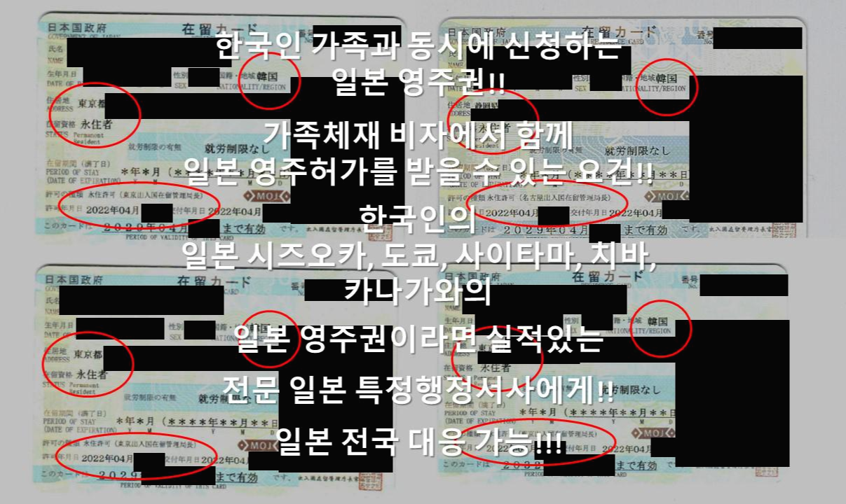 가족 전원이 함께 신청하는 일본 영주권이라면, 실제로 허가를 받아본 적이 있는 전문 일본 특정행정서사에게 맡겨주시길 바랍니다!!