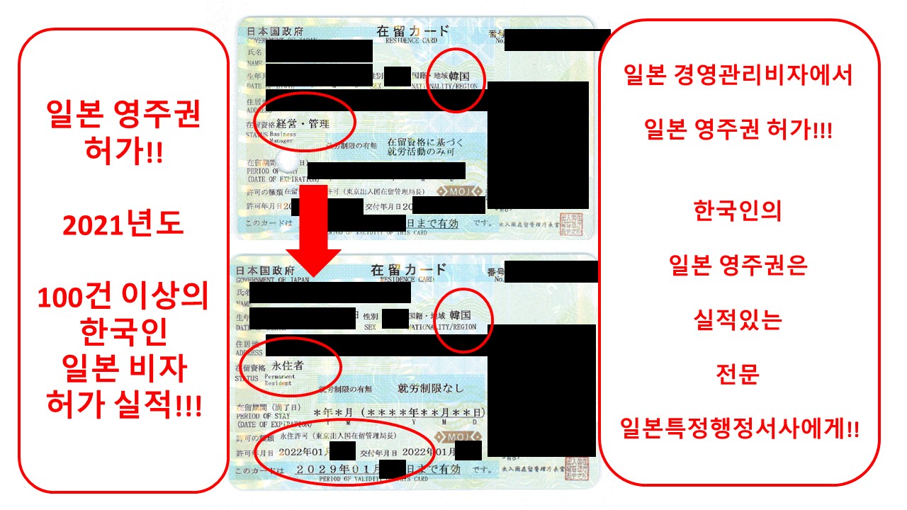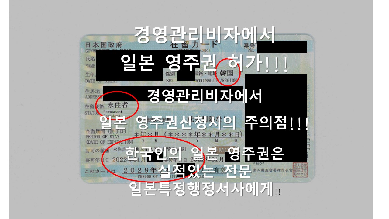 일본 경영관리비자에서 일본 영주권 허가를 받았습니다.