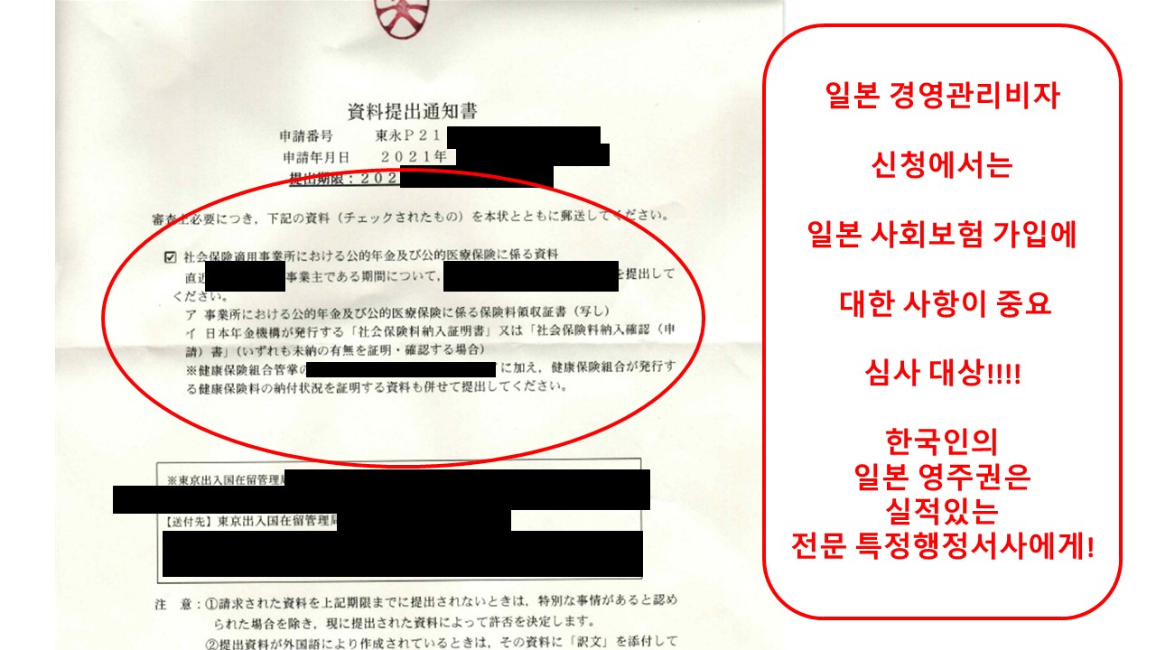 일본 영주권 신청시에는 사업자로서의 사회보험 가입 및 납부상황이 심사되므로,