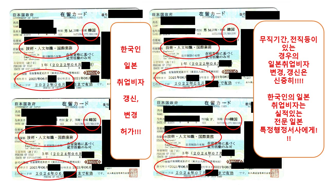 한국인의 일본 취업비자갱신, 변경신청은 실적있는 전문 일본 특정행정서사에게 맡겨주시길 바랍니다!!