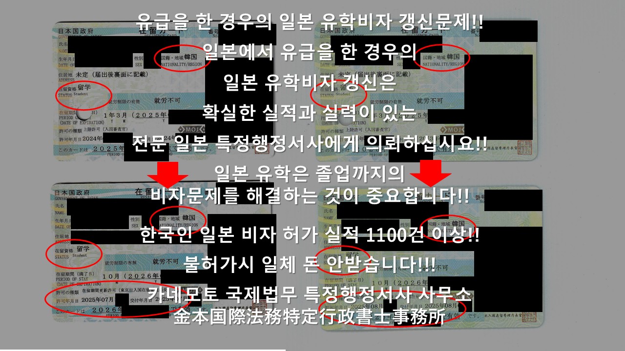 유급을 당한 경우의 일본 유학비자 갱신이라면 확실한 실적과 실력이 있는 전문 일본 특정행정서사에게 의뢰해서 실패를 예방하십시요!!