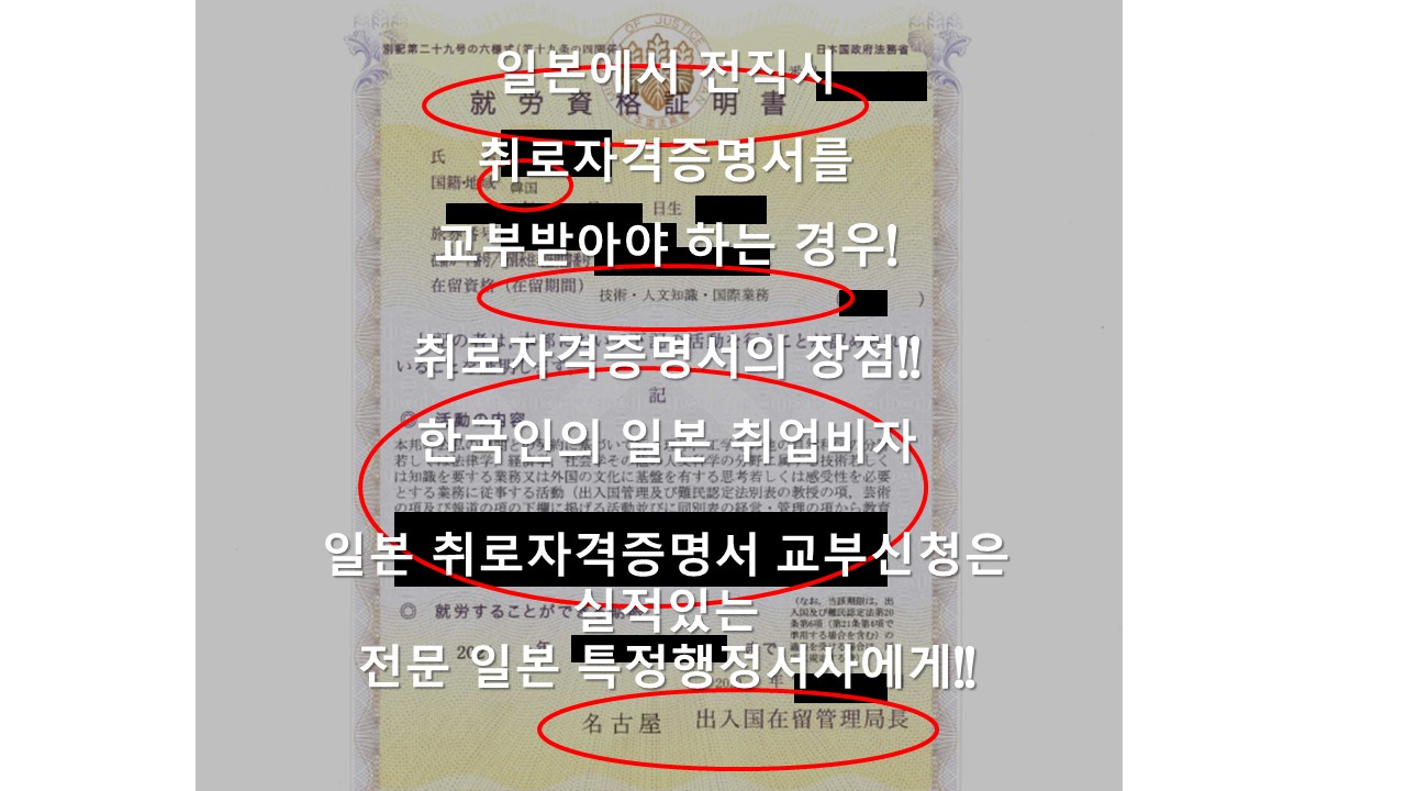 취로자격증명서 교부신청은 실적있는 전문 일본 특정행정서사를 통해서 사전에 실패를 예방하시길 바랍니다.!