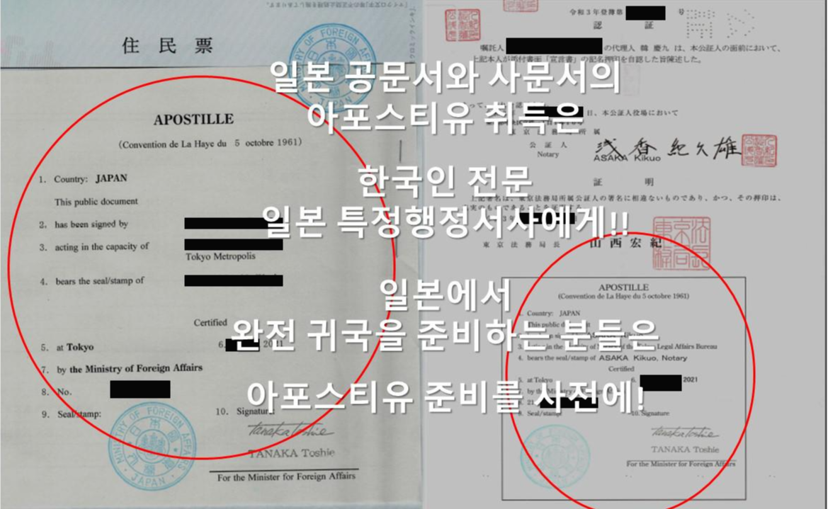한국인의 일본 아포스티유 취득업무는 실적있는 전문 일본 특정행정서사에게 맡겨주시길 바랍니다.