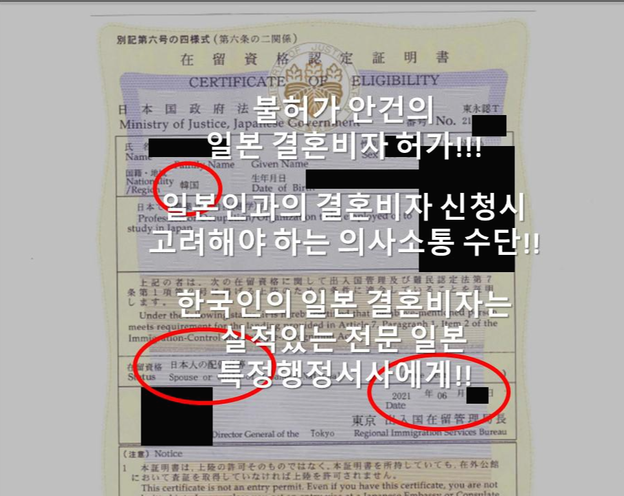 특히, 일본 결혼비자는 불허가를 받을 경우, 정신적 충격이 상당합니다.!!!