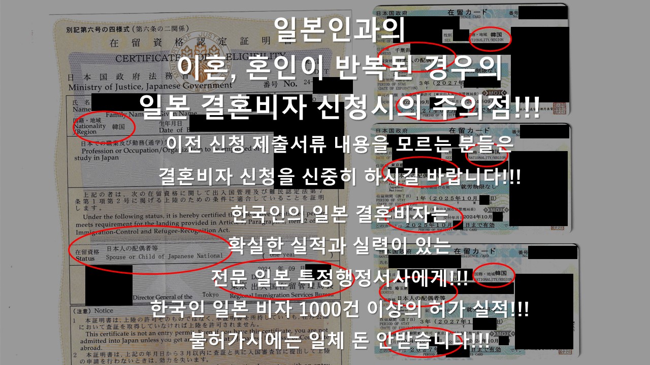 "일본인과의 결혼, 이혼이 반복된 경우의 일본 결혼비자 신청시의 주의점!!"