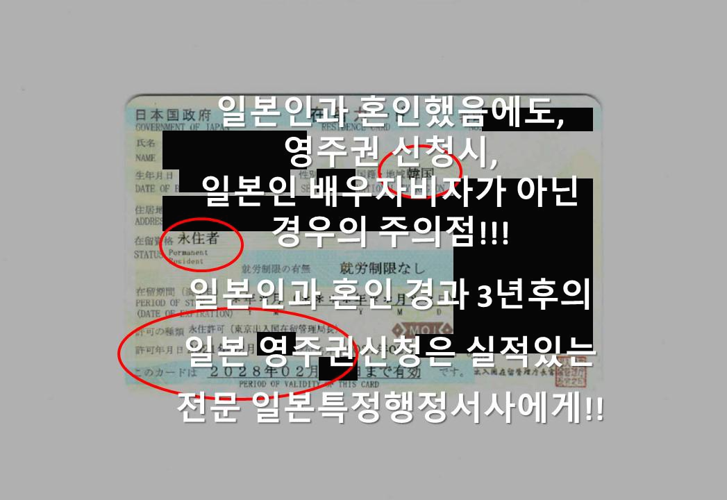 ◆일본인과 혼인후의 영주권 신청은 실적있는 전문 일본 특정행정서사에게 맡겨주시길 바랍니다.
