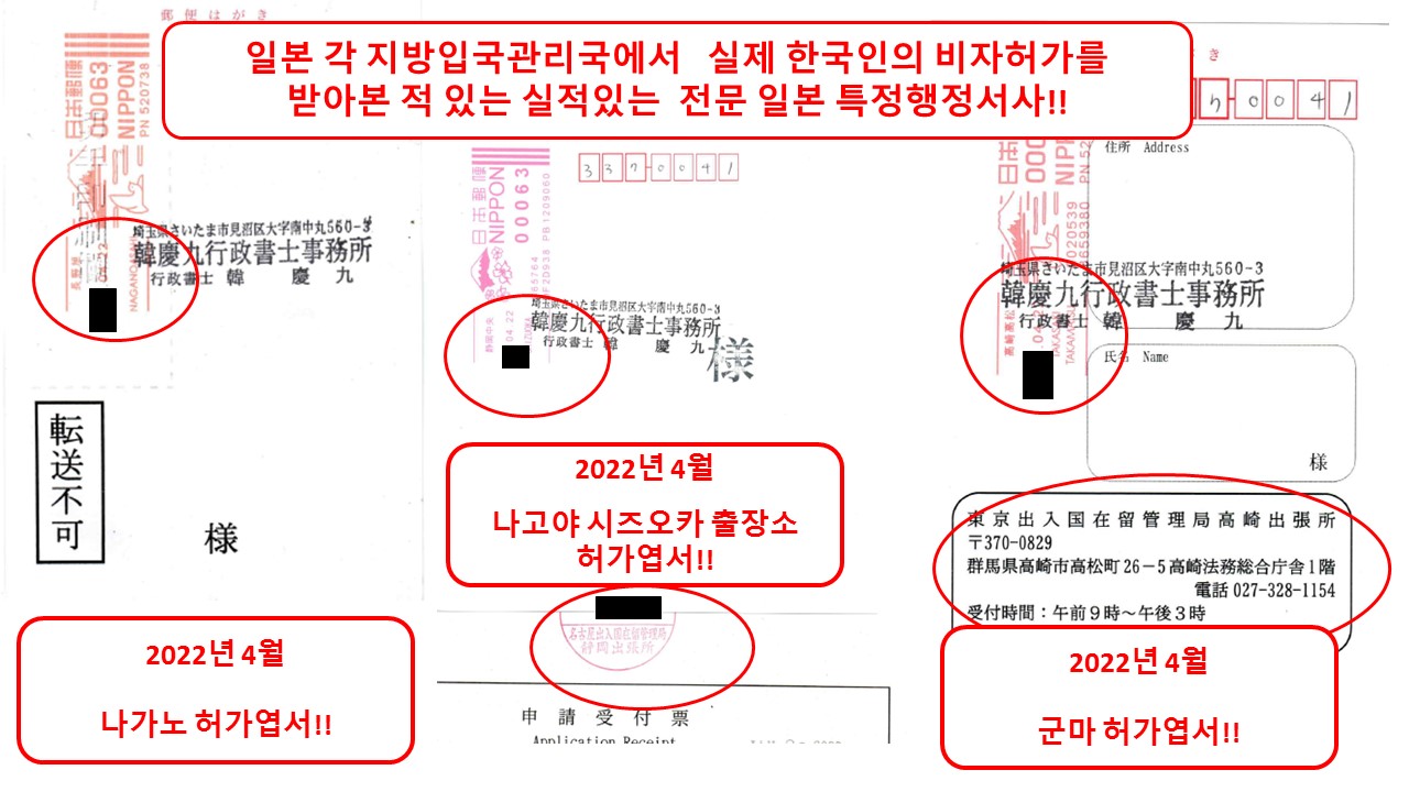 한국인의 일본 비자라면, 각 지방입국관리국에서 실제로 허가를 받아본 적 있는 전문 일본 특정행정서사에게 맡겨주시길 바랍니다.!(기간이 급박한 안건, 비매너적인 안건, 불법, 위법적인 안건은 수임 불가)