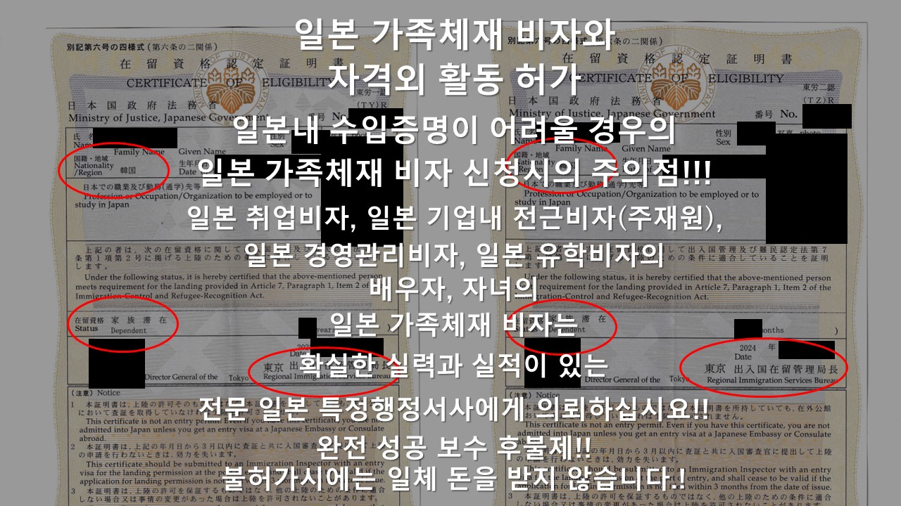 의 가족체재 비자는 일본 현지에서 수입 및 부양능력을 증명하는 것이 무척 어려우며,