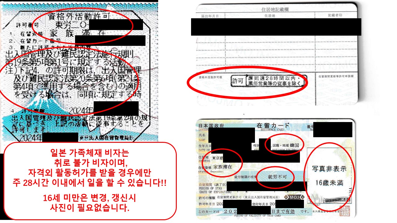 ◆ 일본 가족체재비자는 일본에서의 취로활동이 원칙상 금지된 비자입니다.