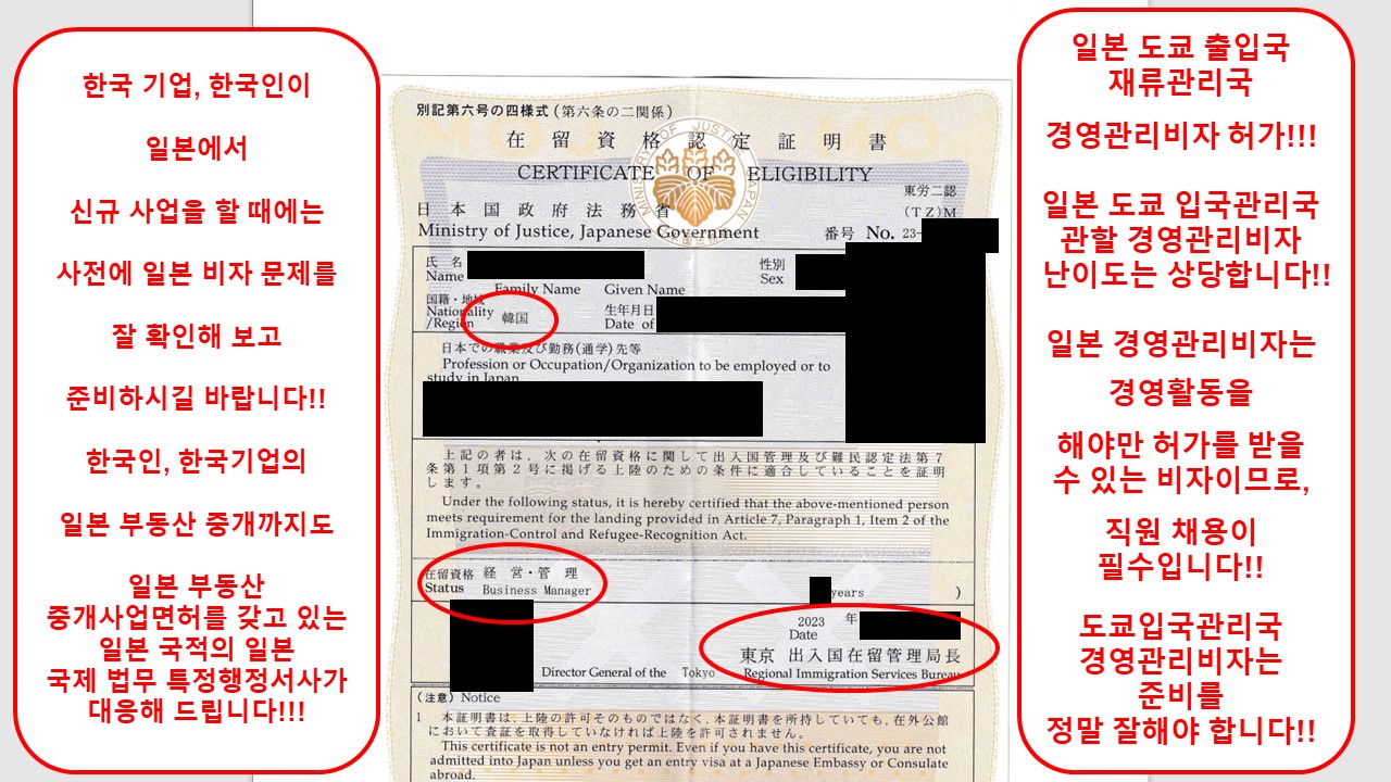 특히, 도쿄출입국재류관리국 관할의 경영관리비자는 그 신청 난이도가 만만치 않으며, 심사기간만 6개월 이상이 걸리는 경우도 있는 일본 비자중에서도 손꼽히는 어려운 비자입니다.