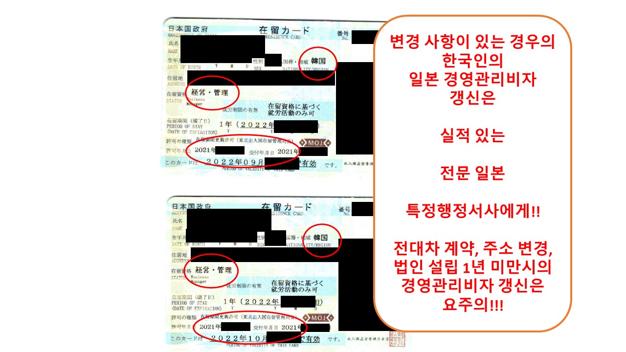 일본에서 경영관리비자로 체류하는 분들은 갱신도 만만치 않다는 점을 고려하여,