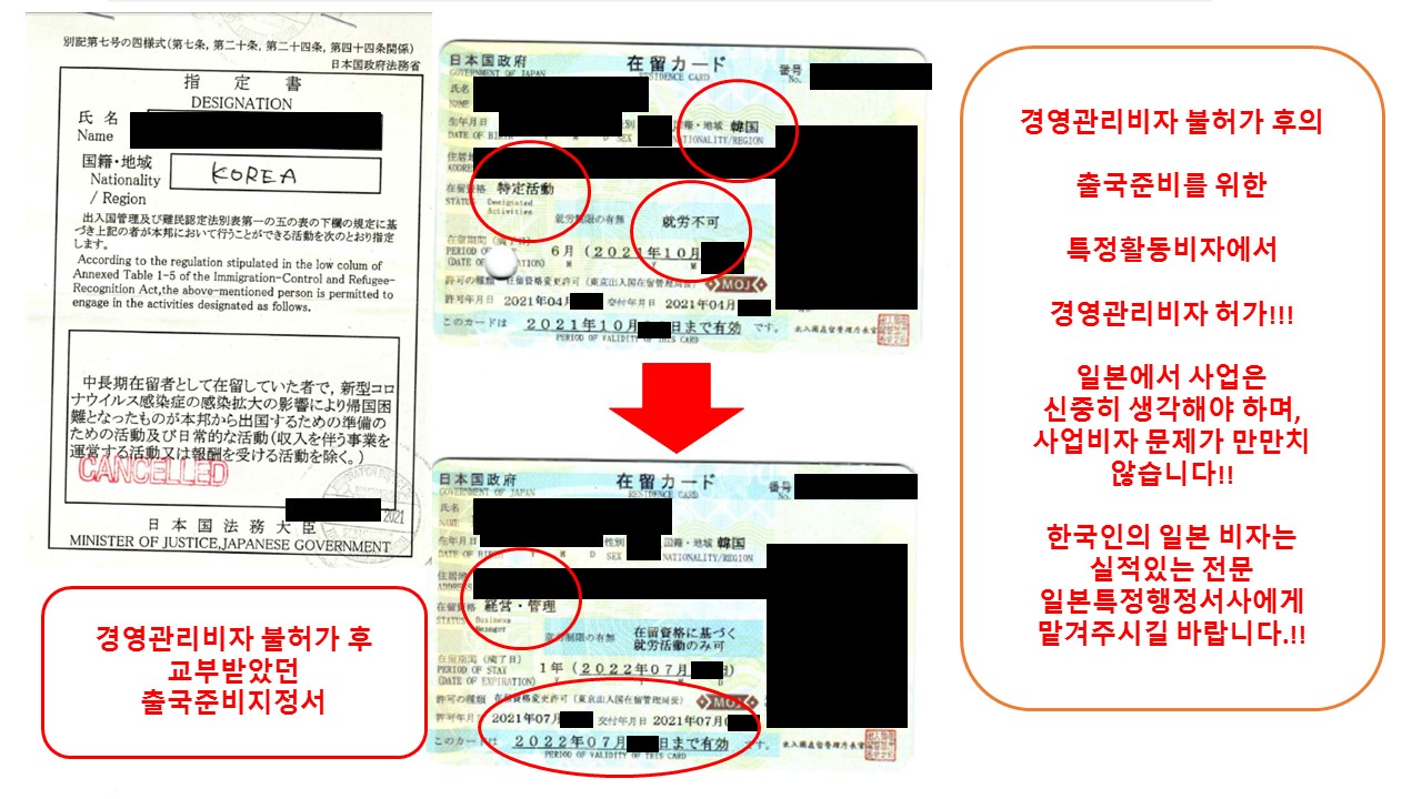 2021년 올해 불허가를 받았던 경영관리비자를 회복했습니다.
