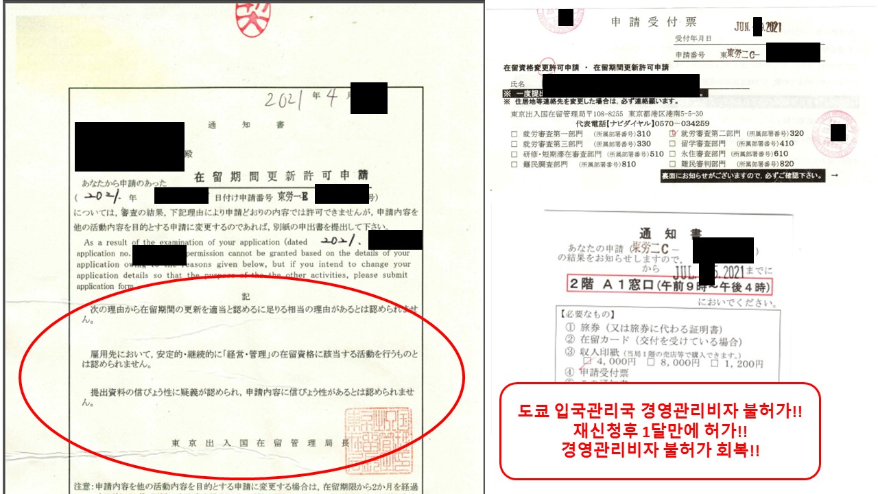 경영관리비자 갱신 불허가 통지를 받은 뒤,