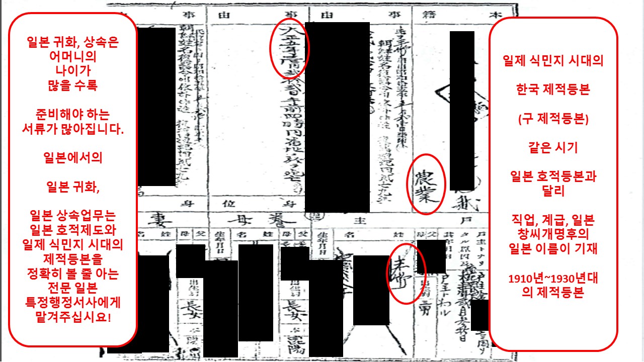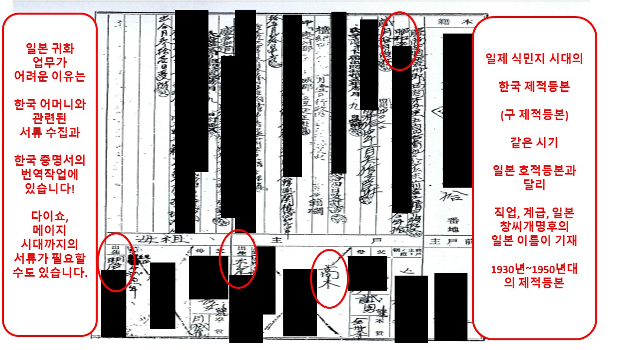 일반인이 보기 어려운 한국 제적등본(구 호적등본)내용을 확인해서 준비하는 데에 있다고 할 수 있습니다.