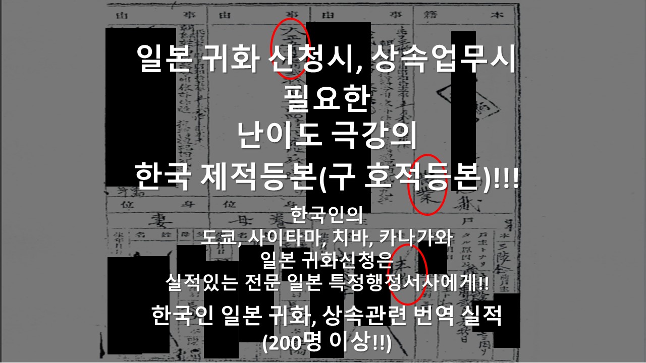 이번 글에서는 일본 귀화,상속업무시 필요한 난이도 극강의 한국 제적등본에 대해서 이야기를 해보고자 합니다.