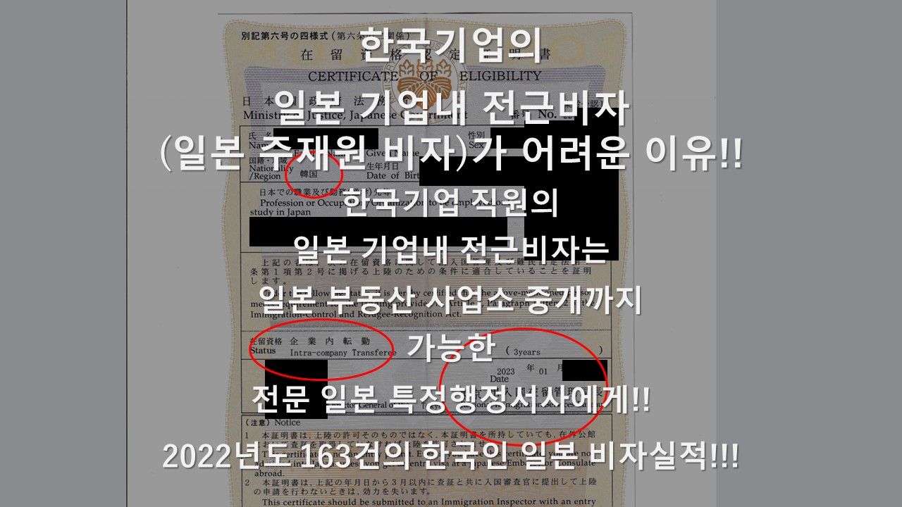 ◆한국 기업의 일본 기업내 전근비자(주재원)비자 신청이라면 , 실제 허가를 받은 적 있는 전문 일본 특정행정서사에게 맡겨주시길 바랍니다.(비자 업무는 보수 지불 완전 성공 후불제)