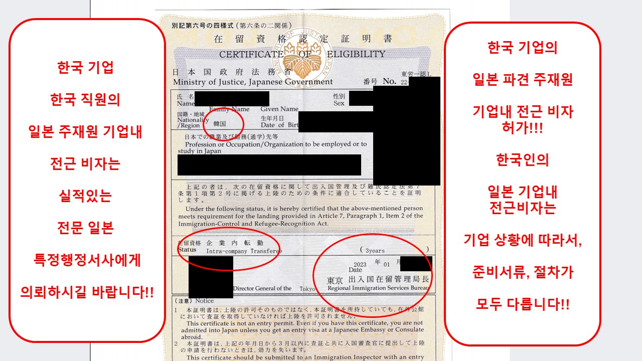 특히, 한국기업과 일본 기업에서, 처음 기업내 전근 비자신청을 하는 경우에는