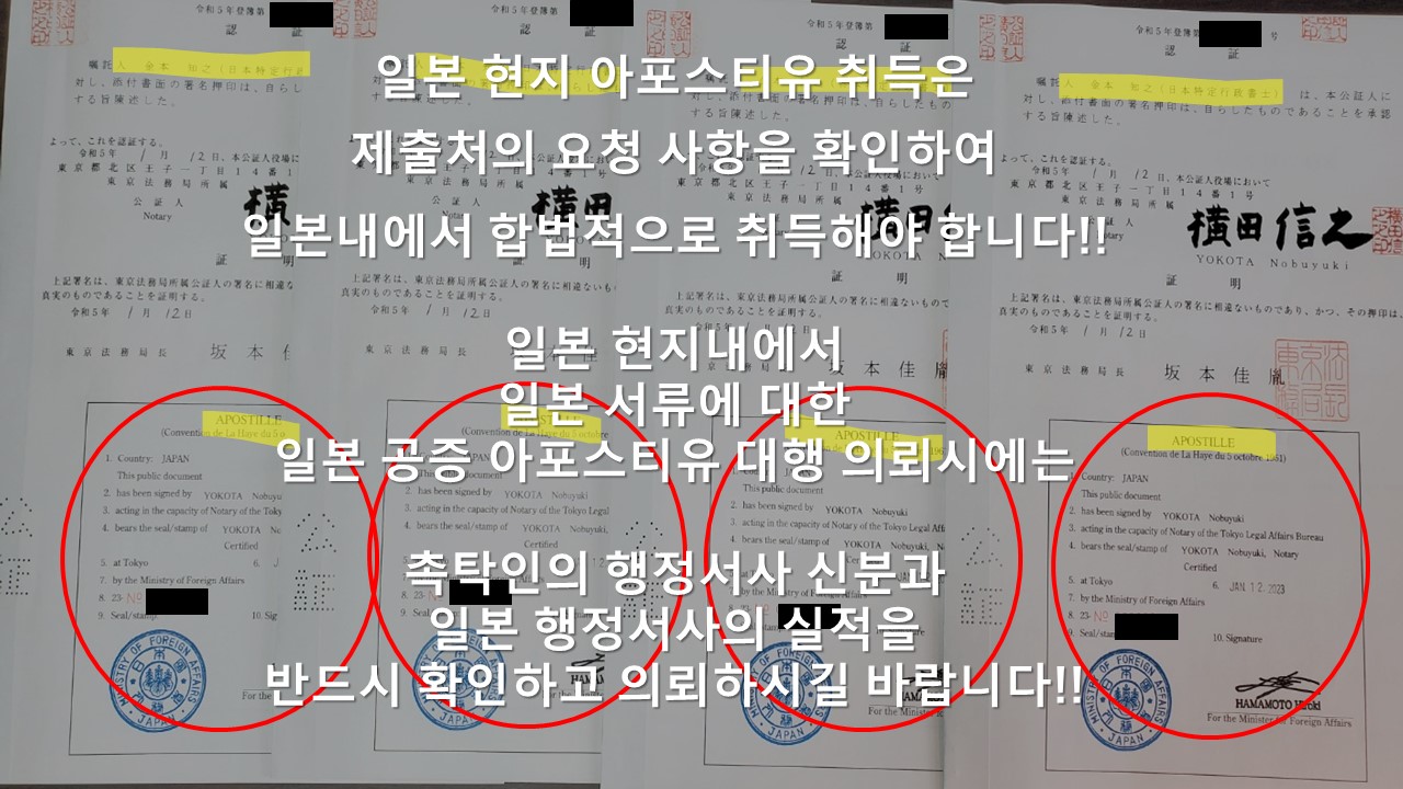 무엇보다, 일본에서 아포스티유 취득을 대행하는 업자가 행정서사 등록자가 아닐 경우에는,