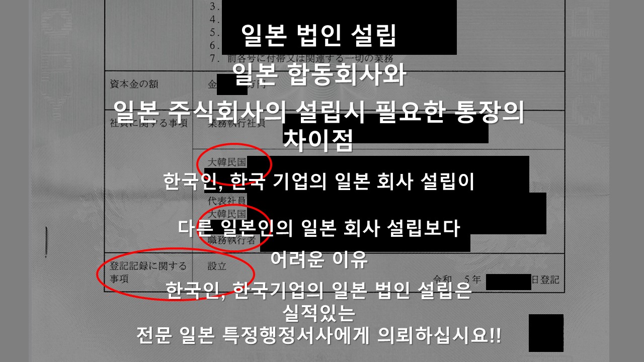 | 한국 법인의 일본 자회사 설립시 해결해야 하는 문제들-한국 법인의 일본 주식회사, 일본 합동회사 설립은 실적 있는 전문 일본 특정행정서사에게!! (0) | 2023.02.05 |