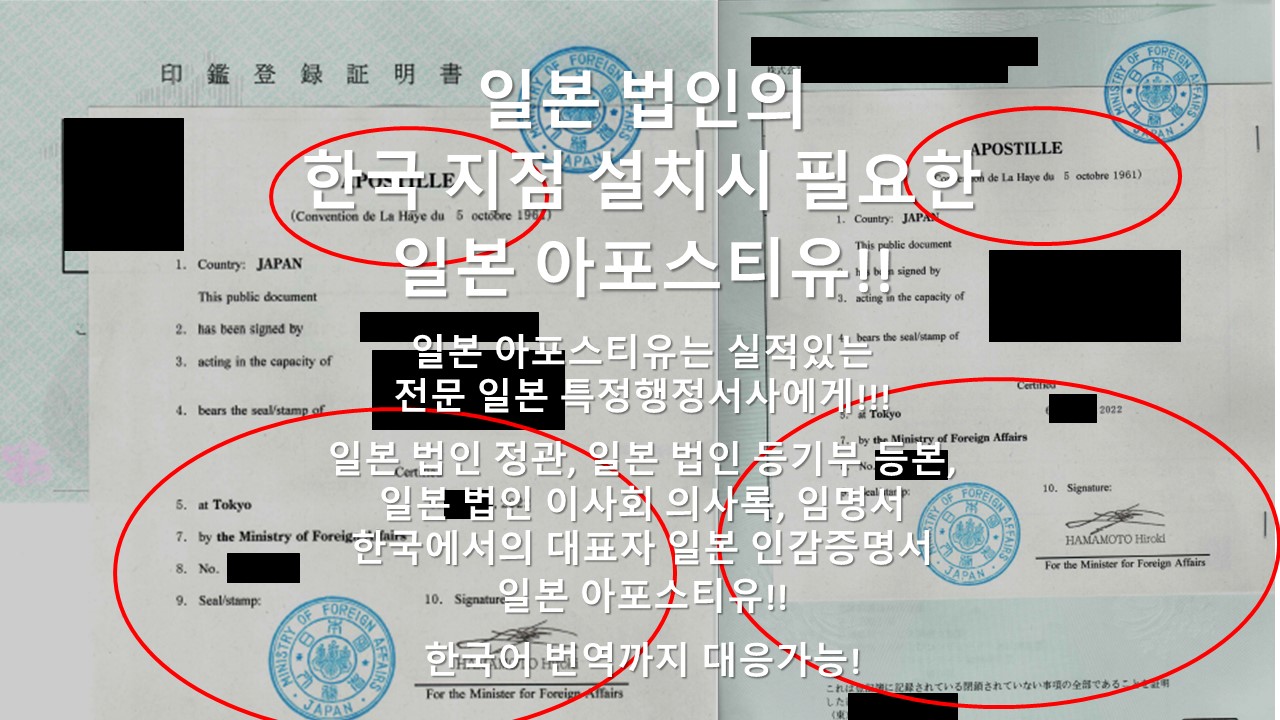 ◆한국 법무사 선생님과 변호사 선생님들의 일본 법인 고객분들의 일본 아포스티유 업무는 한국어 일본어 번역까지 대응 가능한 전문 일본 특정행정서사에게 맡겨주시길 바랍니다.