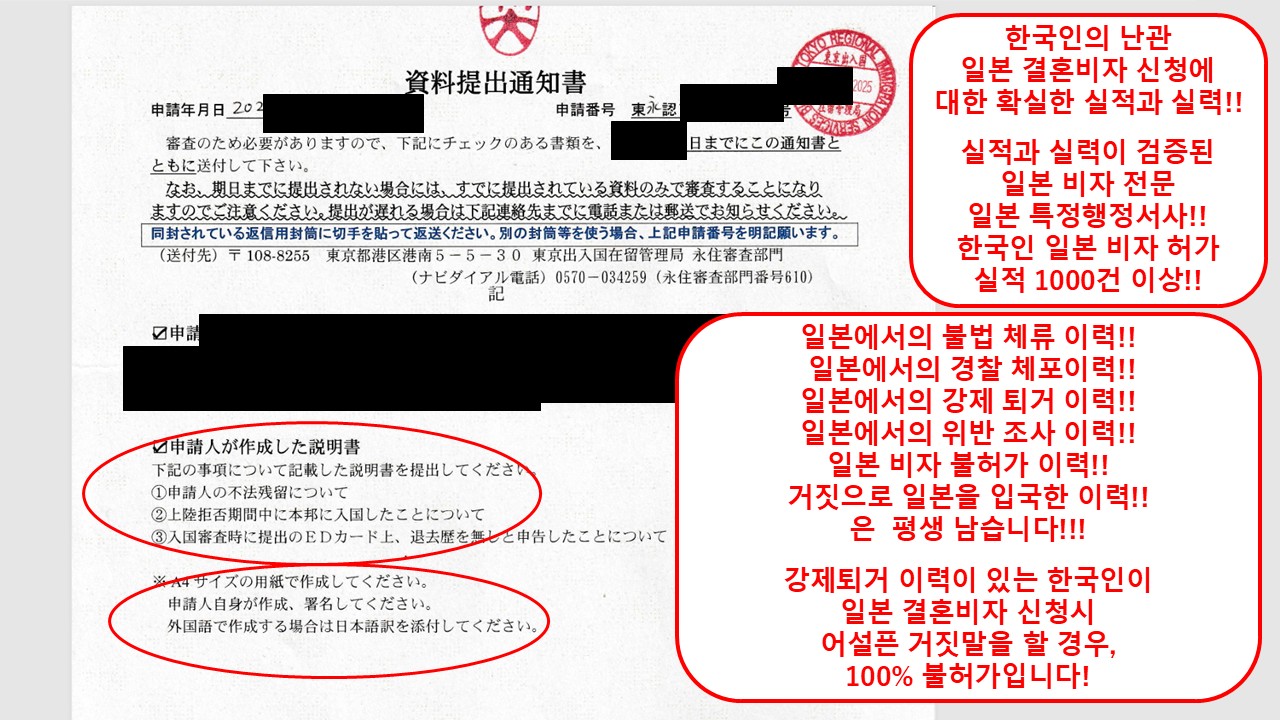 특히, 일본 결혼비자는 일본 입국관리국에서 확인할 수 있는 모든 사항에 대해서
