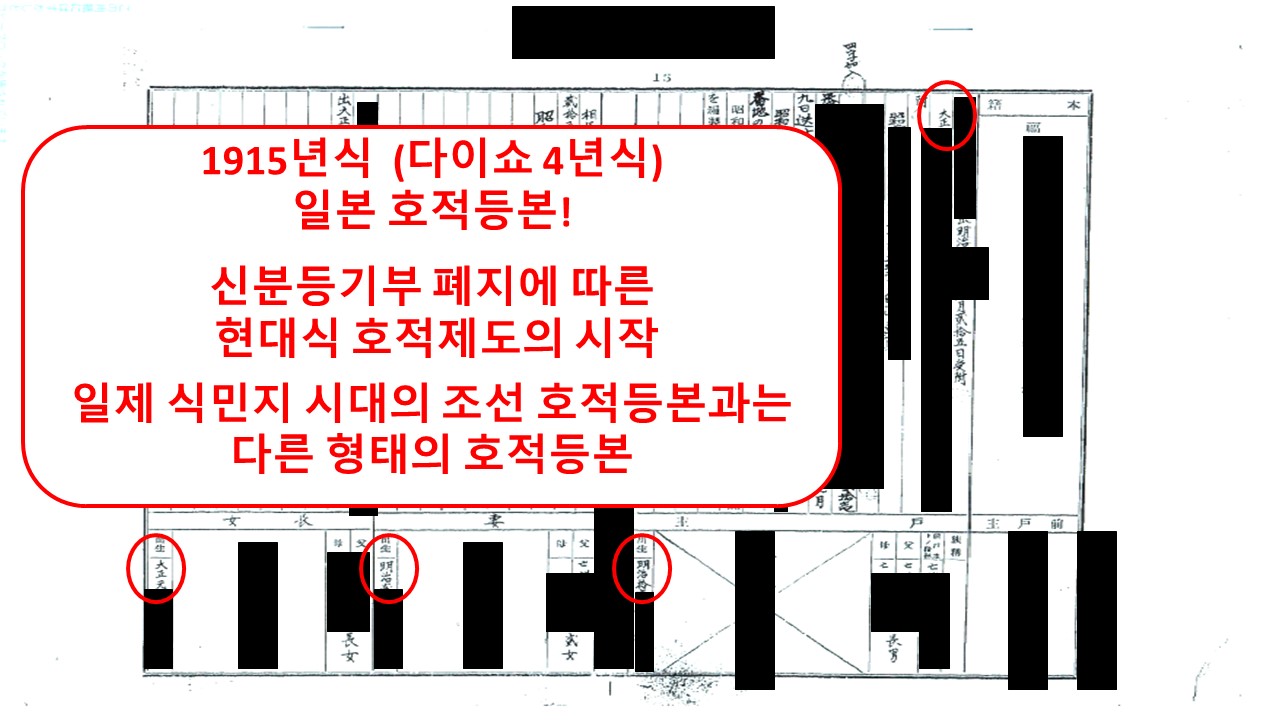 이 시기에도 일본의 메이지 5년(1872년)식 호적제도를 사용해 온 흔적이 있습니다.