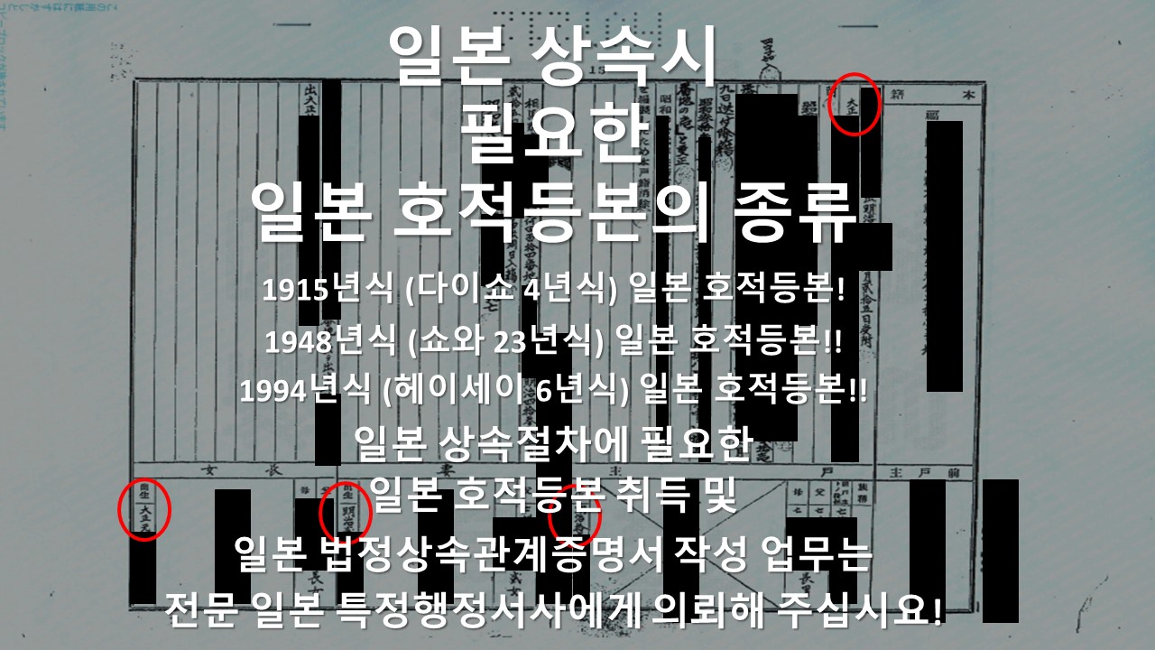 만약, 사망한 일본 친족중에서 일본인으로 귀화를 한 한국인이 있다면, 한국의 제적 (구호적)등본도 모두 모아야 하는 작업이 됩니다.