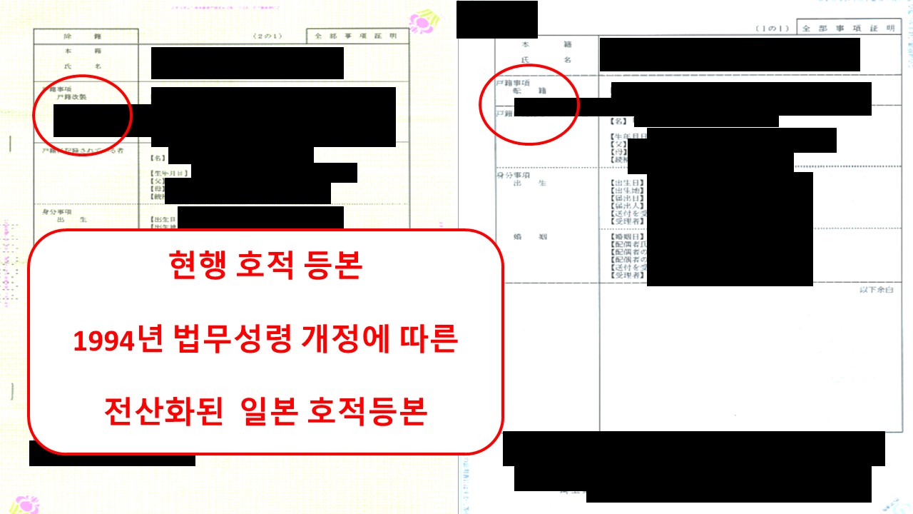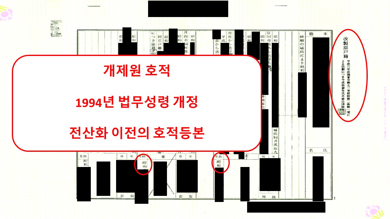 "개제원 호적(改製原戸籍)"을 발급받아야 하는 경우가 많습니다.