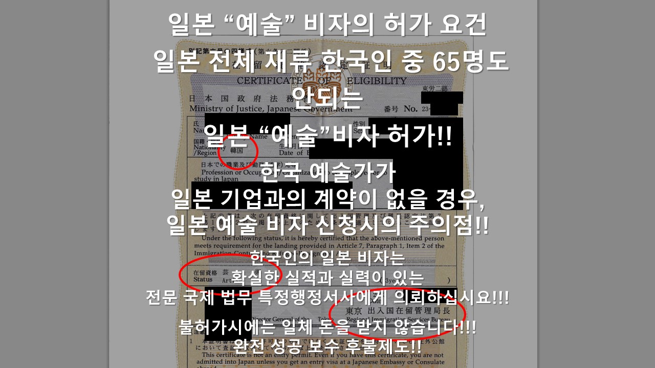 ◆한국인의 일본 예술비자는 한국인의 언어, 감수성, 문화, 교육을 이해하지 못하면, 일본 입국관리국 심사관에게 설명 자체가 어려운 아주 어려운 비자입니다.