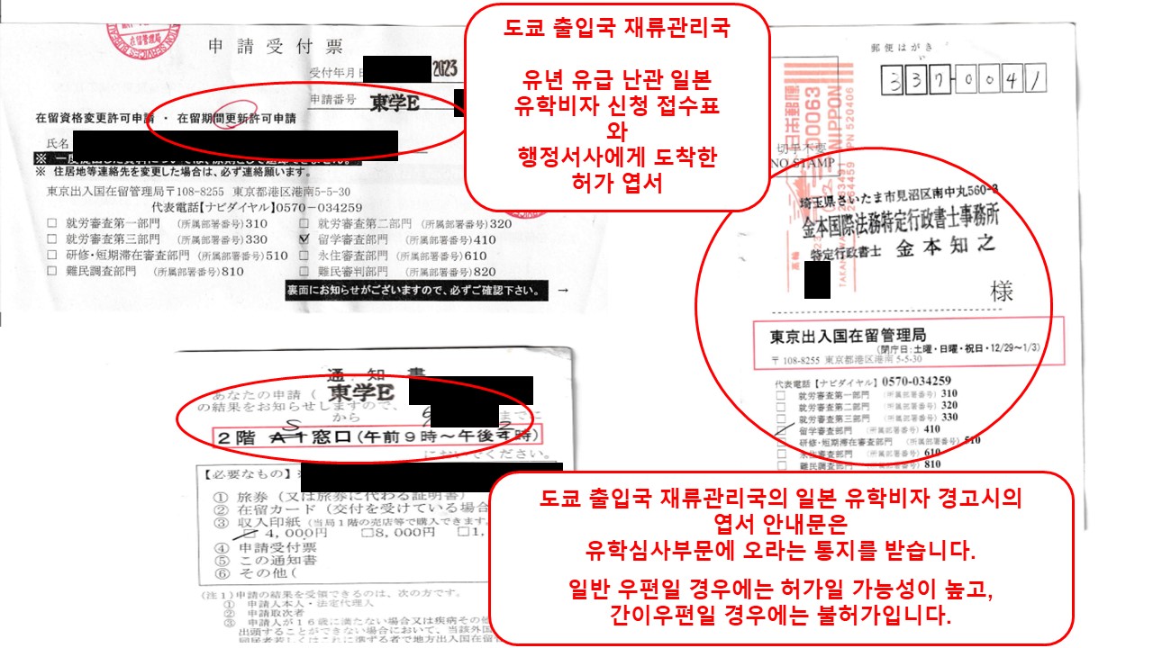 일본 도쿄출입국재류관리국의 경우, 유학비자를 허가하더라도,