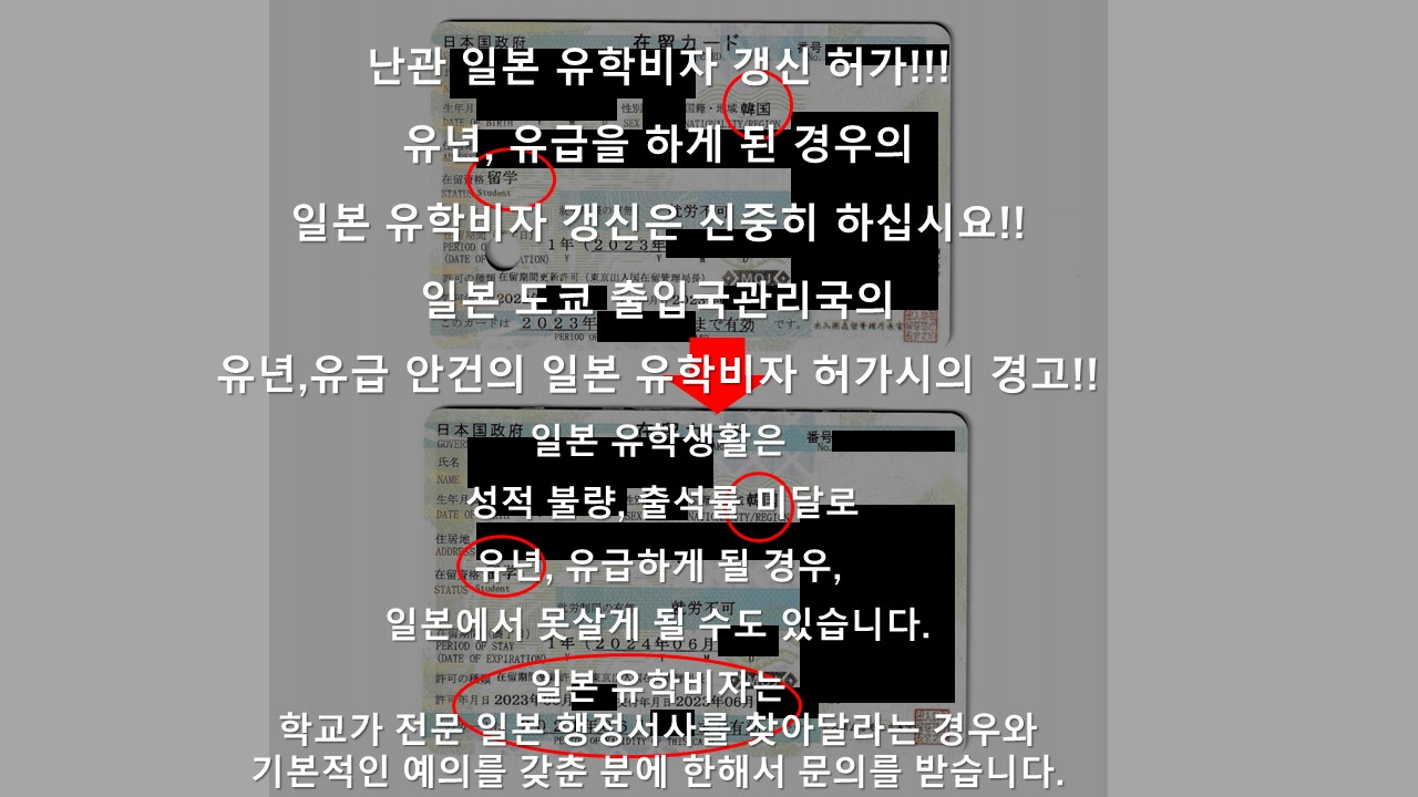 ◆유년, 유급이 있는 경우, 일본 유학비자 갱신은 어렵습니다.