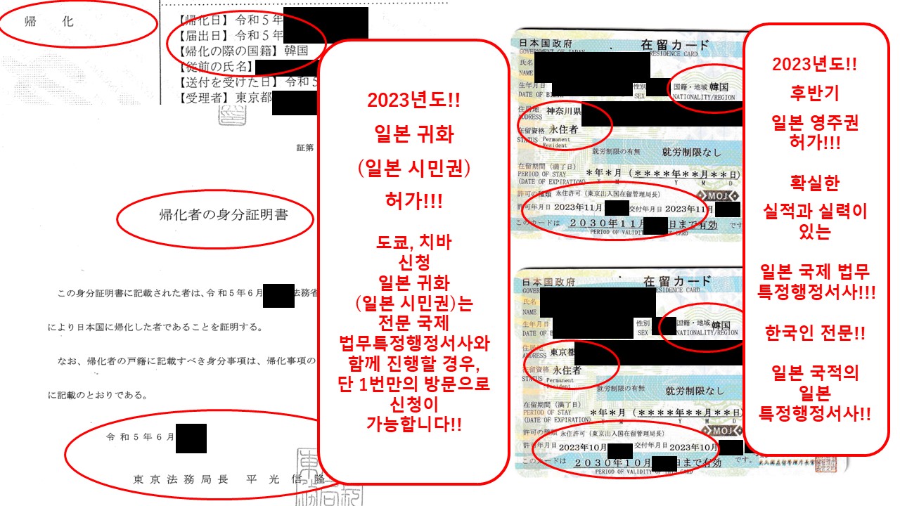 2023년도에도 많은 한국 고객분들의 일본 귀화(시민권), 일본 영주권 허가를 받았습니다.