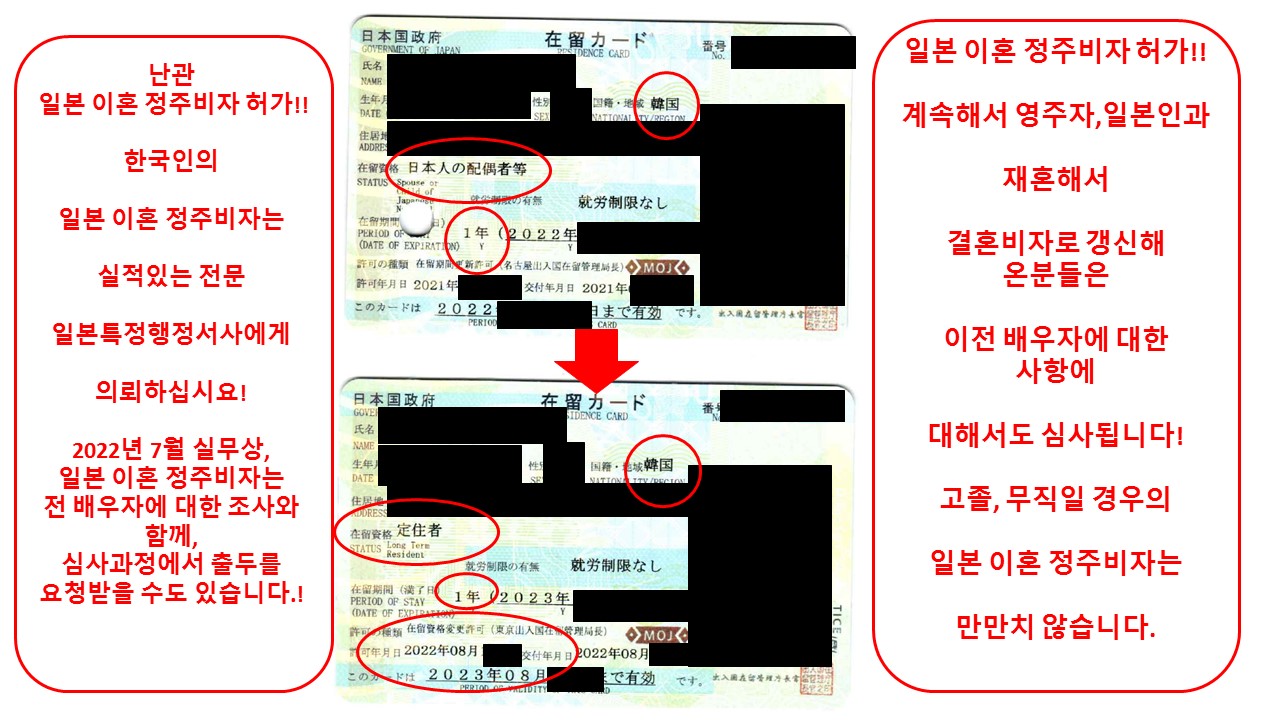 ◆일본 이혼 정주비자는 이 분야에서 경험있는 전문 일본 특정행정서사를 통해서, 문제를 예방하시길 바랍니다.