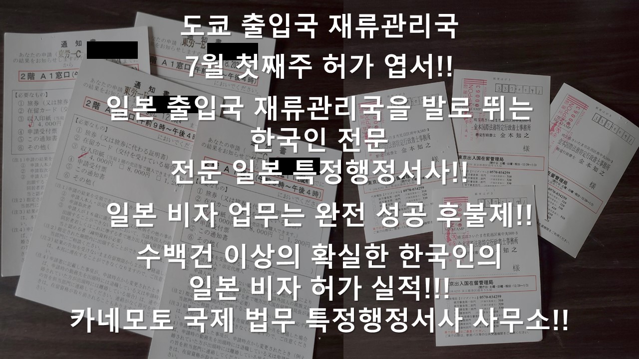 한국인의 일본 비자라면, 수백건 이상의 확실한 허가 실적과 실력이 검증된 전문 일본 국제 법무 특정행정서사에게 의뢰하십시요!!! (일본 유학경험 없이, 독학으로 일본어를 공부해서, 한국에서 초등학교, 중학교, 고등학교. 대학교, 군대를 마치고 일본 국적을 취득한 일본 국제 법무 특정행정서사!!! 검증된 한국인의 일본 비자, 일본 귀화 허가 실적 !!!)