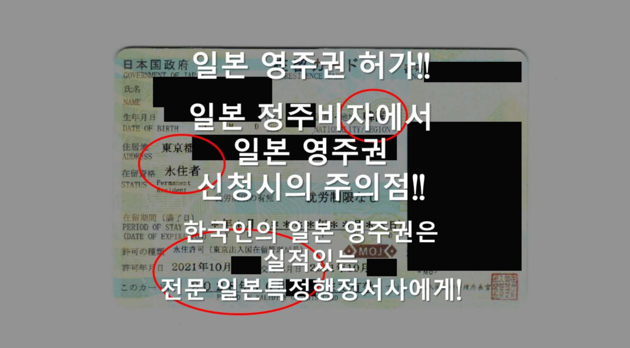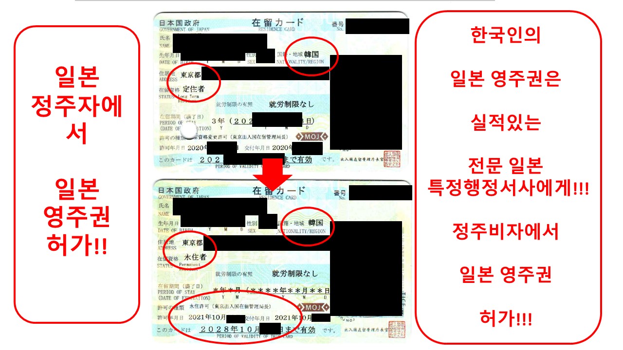 ◆한국인의 일본 영주권 신청은 실제로 한국인의 일본 영주권 허가를 받아 본 실적있는 전문 일본 특정행정서사에게 맡겨주시길 바랍니다.