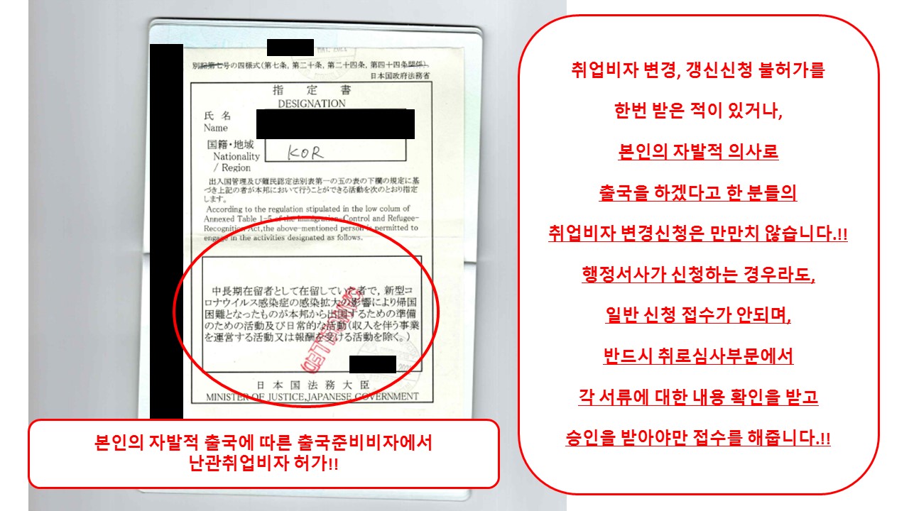 특히, 일본 취업비자 변경, 갱신신청을 통해서,
