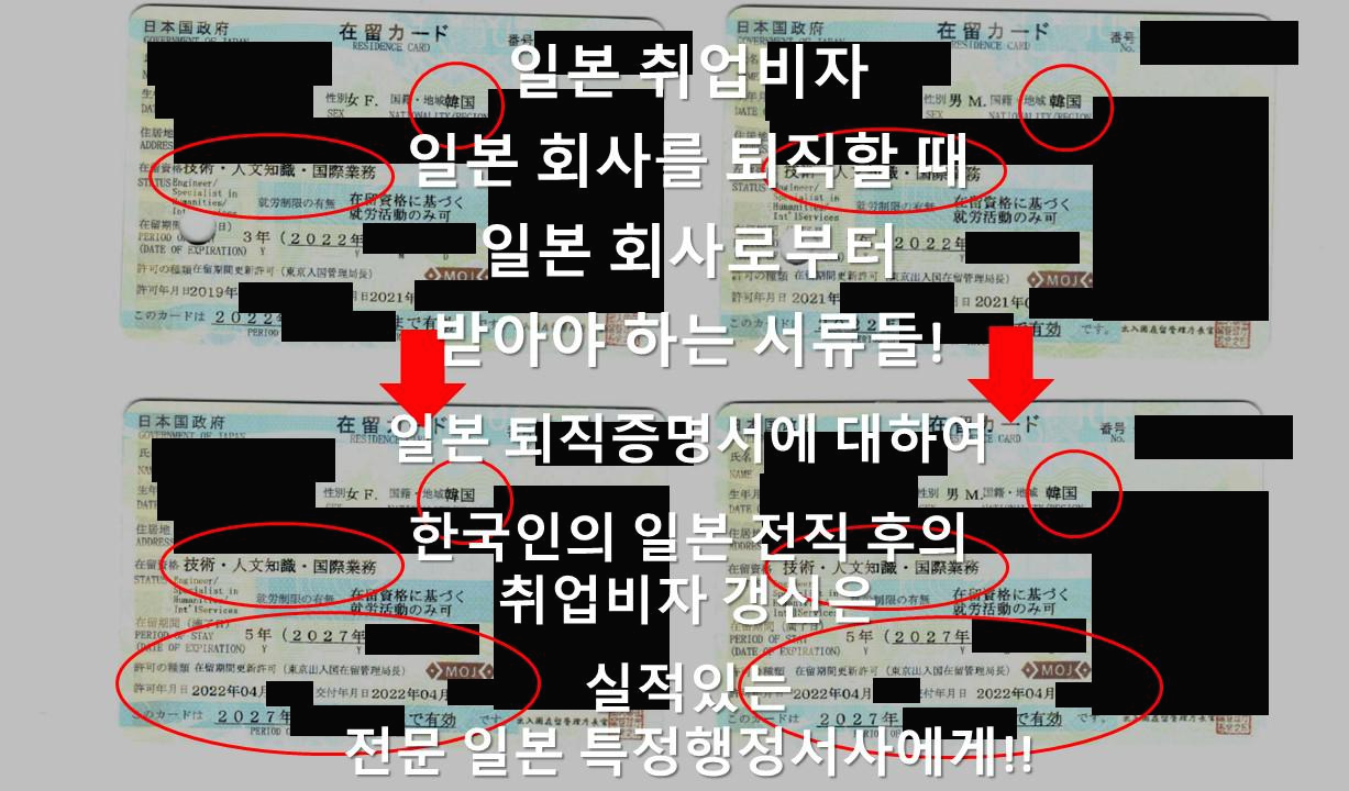 ◆일본에서 취업비자로 재류하고 있는 한국분들이 일본 회사 퇴사, 전직후, 취업비자 갱신시에는 퇴직증명서 제출을 요청받습니다.
