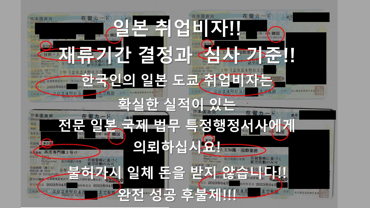 (불허가시에는 일체 돈을 받지 않습니다. 2022년도 한국인 일본 비자 163건의 실적!! 확실한 실적의 한국인 전문 국제법무 특정행정서사!! 완전 성공 후불제!!)