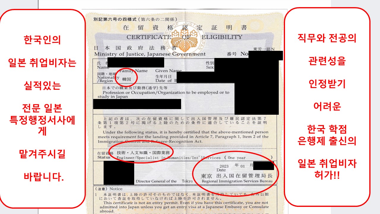 한국인의 일본 취업비자를 행정서사에게 의뢰할 때에는 해당 행정서사의 실적을 반드시 확인하고 의뢰하시길 바랍니다!!