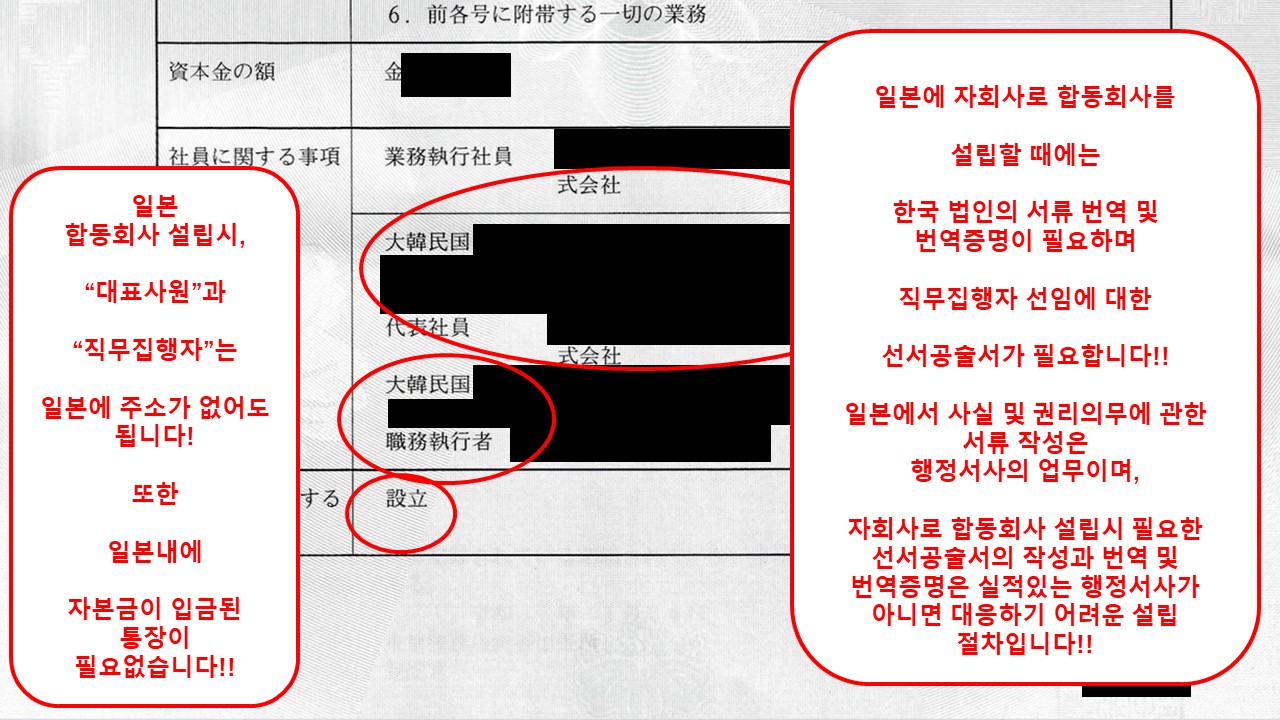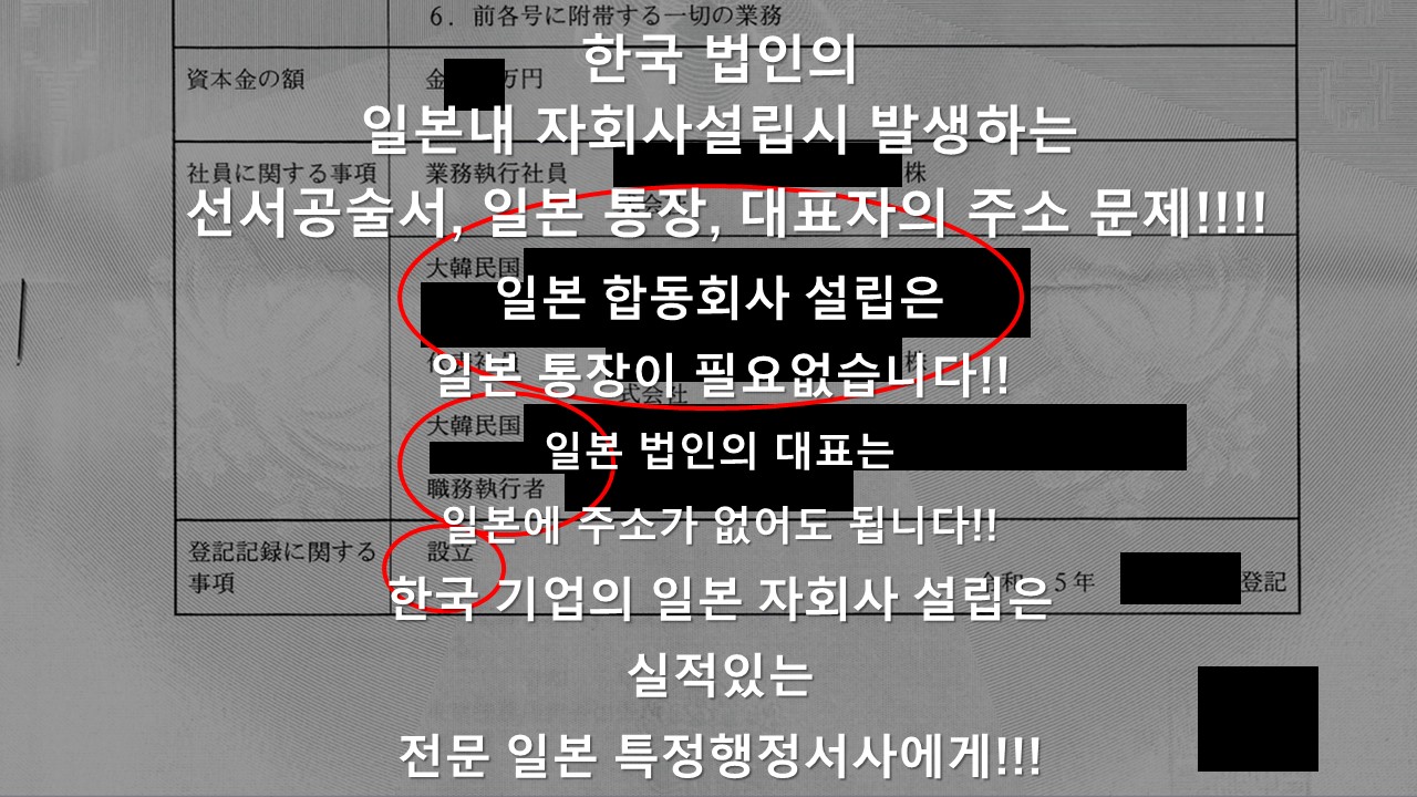 ◆한국 법인의 일본 자회사 설립이라면, 실적있는 전문 일본 특정행정서사에게 맡겨주시길 바랍니다.