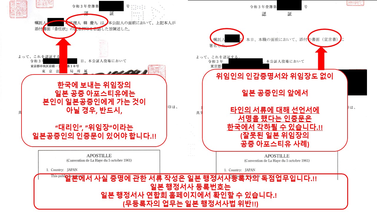 또한, 일본 국내에서 위임장에 대한 공증, 아포스티유는
