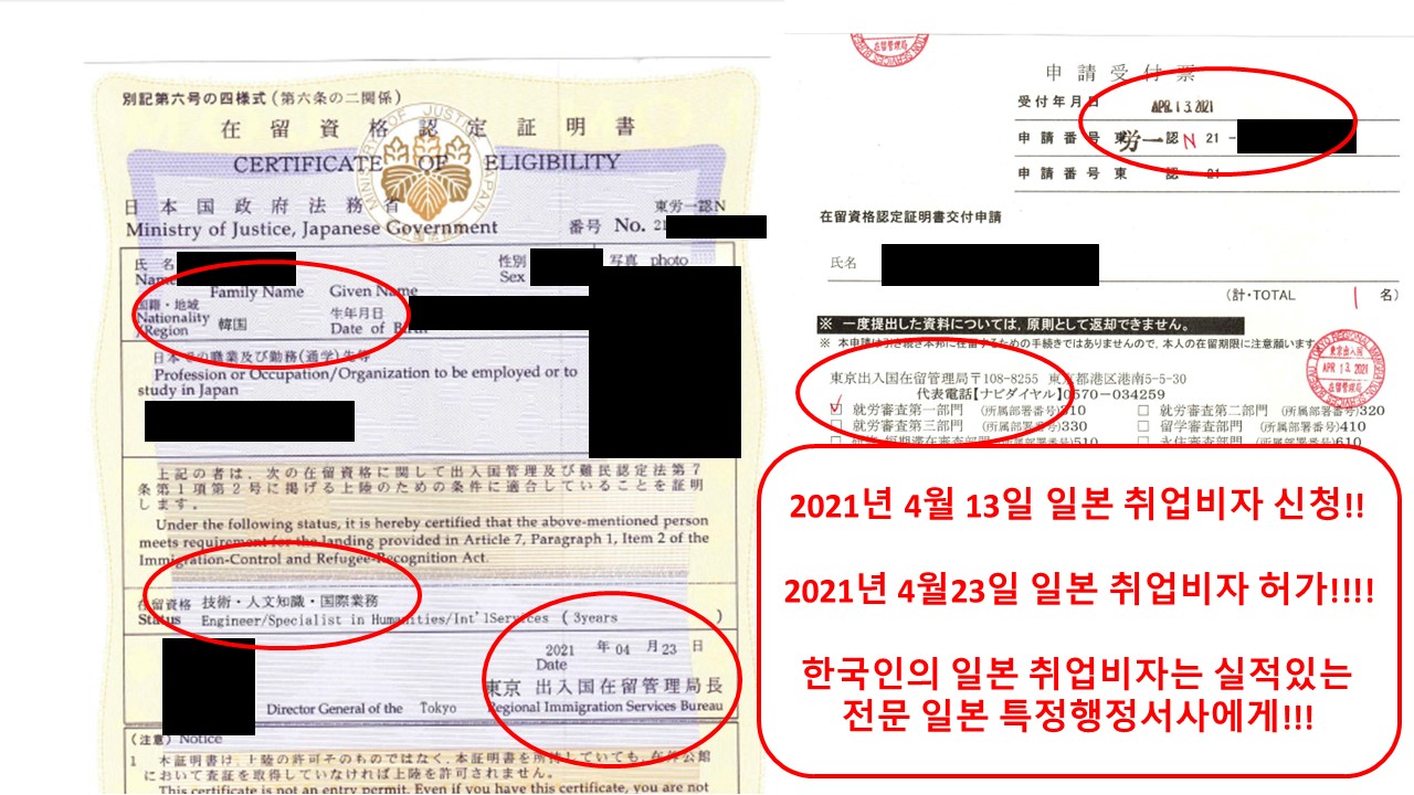 | 일본 유학비자에서 취업비자 변경신청 완벽 정리-한국인의 일본 비자는 실적있는 전문 일본 특정행정서사에게! (0) | 2021.05.05 |