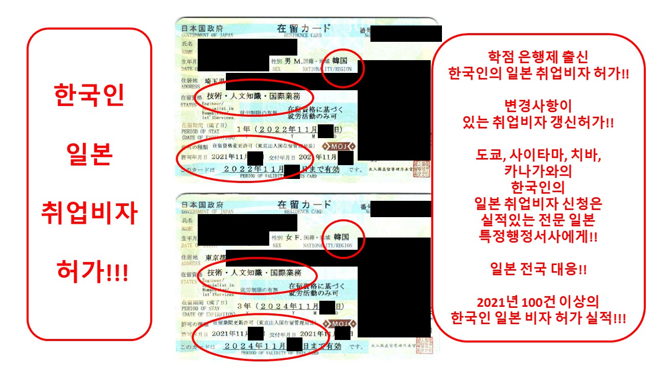 ◆한국인의 일본 취업비자라면, 한국인의 일본 취업비자허가를 직접 받아본 전문 일본 특정행정서사에게 맡겨주시길 바랍니다.! (2021년 한국인 일본 비자허가 실적 100건 이상!!!)