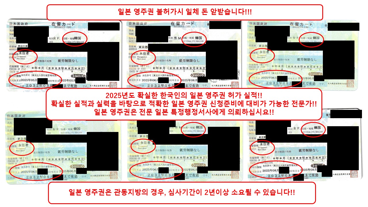 한국인의 일본 영주권이라면 실적과 실력이 검증된 전문 일본 특정행정서사에게 의뢰하십시요!!!
