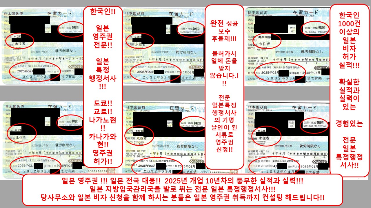 실제 한국인의 일본 영주권을 허가 받아본 이력과 전문성이 중요하다고 할 수 있습니다.